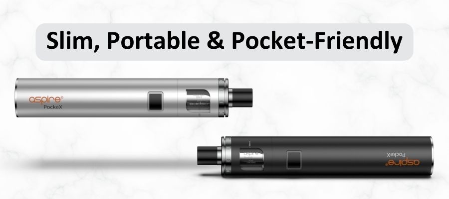 The Aspire PockeX Vape Kit is a slim and pocket-friendly vape pen that's ideal for beginners. The PockeX has been around for years and is Aspire's best-selling device, and it's easy to see why: this vape pen is the perfect first kit! The PockeX AIO (all-in-one) offers a great DTL draw with the included 0.6Ω (ohm) PockeX coil, and can provide a smooth MTL vape with the included 1.2Ω (ohm) coil.