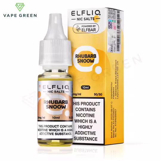 Let's start with Rhubarb Custard Nic Salt E-Liquid by Elf Bar Elfliq.
