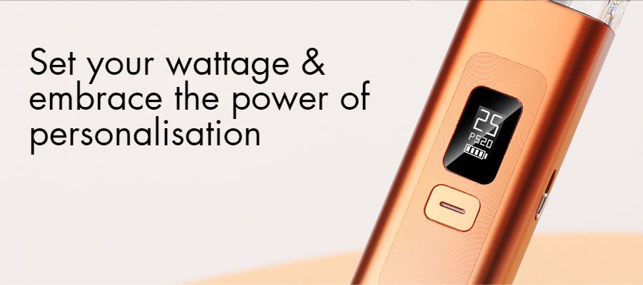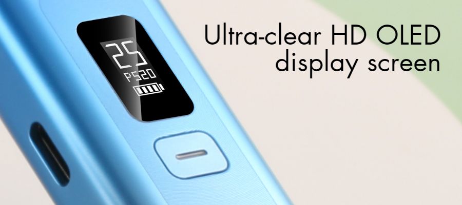 The user interface features a small HD OLED screen and an easy-to-use button for powering on or off and adjusting wattage between 5-25W, while an adjustable airflow switch helps to customise your draw from MTL to RDTL.