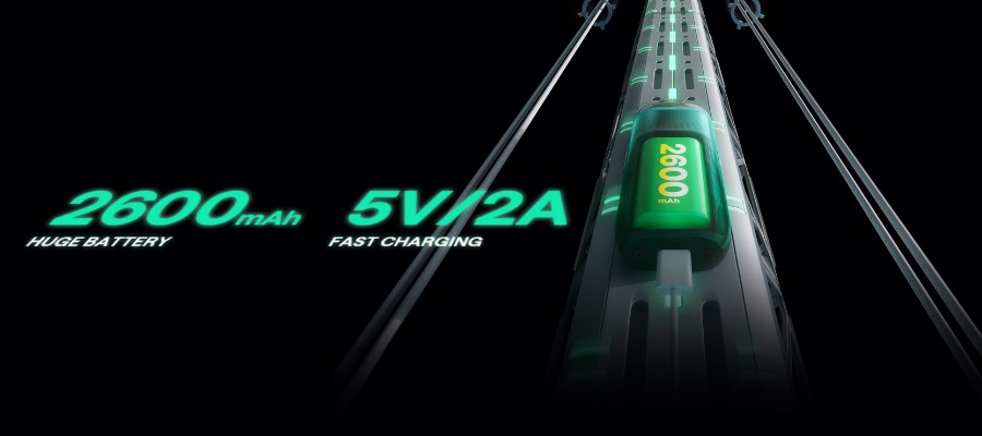 This device is powered by a hefty 2600mAh internal battery with 2A USB Type-C fast charging (a cable is included with the kit), ensuring swift recharges and extended use time.