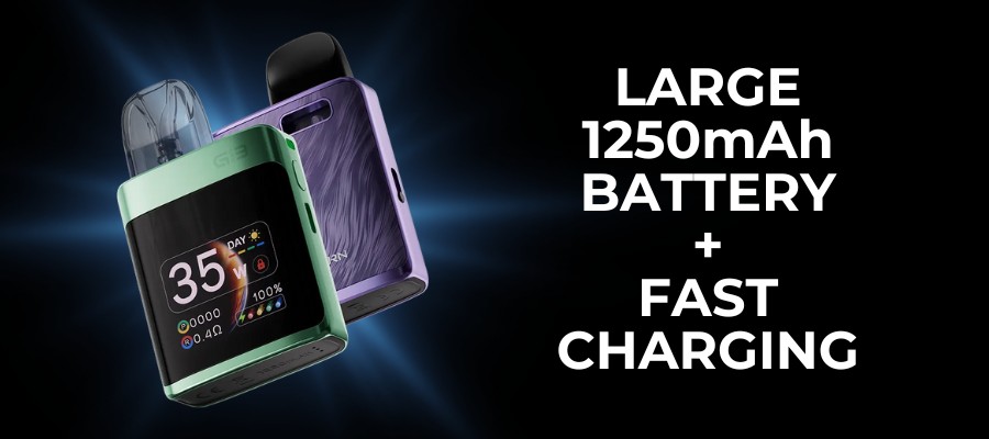 The 1250mAh built-in battery delivers reliable power for extended vaping sessions, ideal for all-day use. The device supports USB Type-C fast charging, reaching 80% charge in just 20 minutes with the included cable, reducing downtime and maximising convenience.