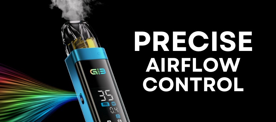 The full-screen LCD display shows key information such as wattage, battery life, and coil resistance, offering an intuitive vaping experience. The adjustable airflow slider further customises your vape to suit your preferences.