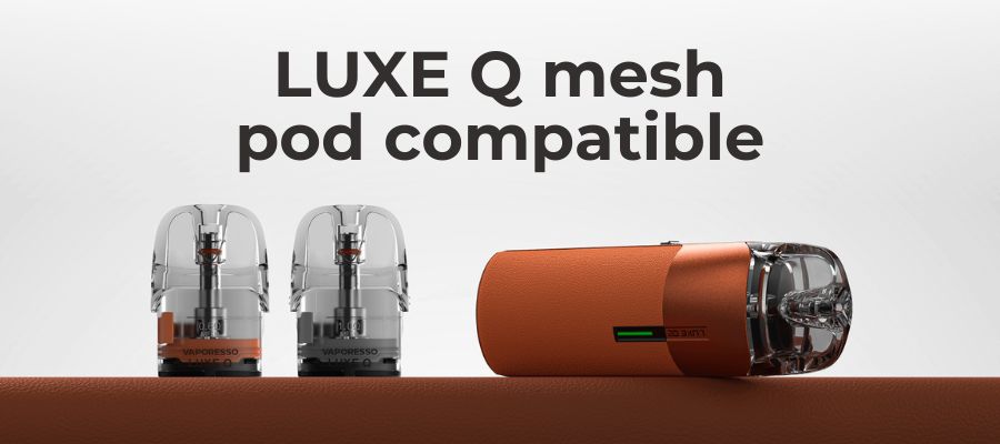 This kit includes two refillable Luxe Q pods, each with built-in mesh coils. The pods come in resistances of 0.6 ohms and 1.0 ohms, catering to different vaping preferences.