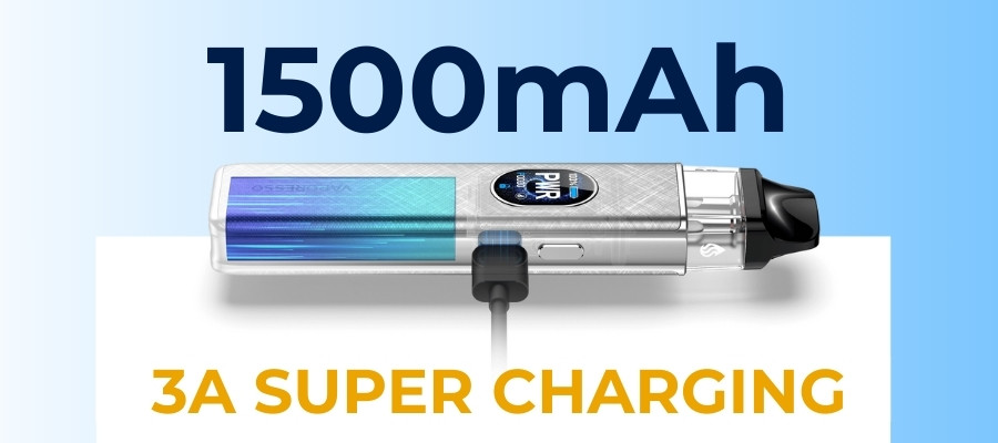 The XROS 5 is powered by a whopping 1500mAh battery that supports ultra-fast 3A USB-C charging—capable of reaching 80% in just 20 minutes. A USB-C cable is included with the kit for convenient charging. Please note that to make use of the 3A fast charging, a compatible 3A fast charger (wall adapter) is required.