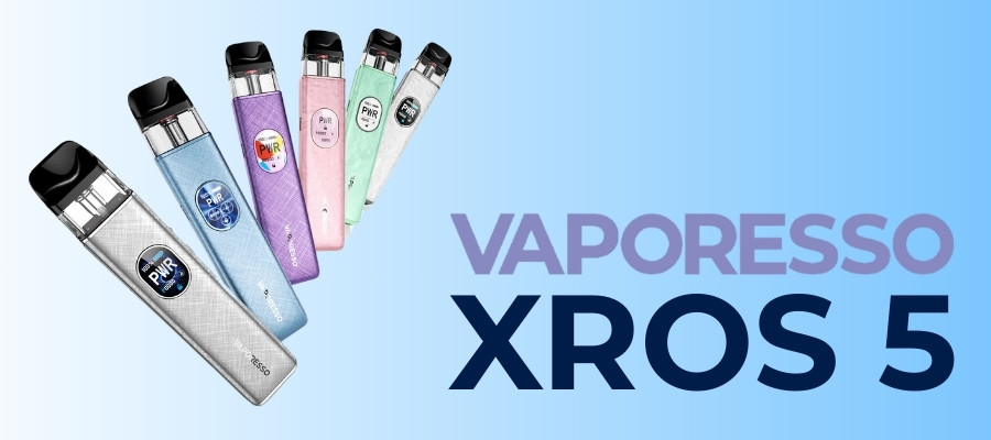 The Vaporesso XROS 5 Pod Kit is a versatile pod system designed for both Mouth-to-Lung (MTL) and Restricted Direct-to-Lung (RDTL) vaping. Featuring a robust 1500mAh battery, it offers adjustable power up to 30W, ultra-fast 3A USB-C charging, and a vivid 0.88" HD screen. Enhanced with COREX 2.0 technology, it ensures rich flavour and extended coil life.